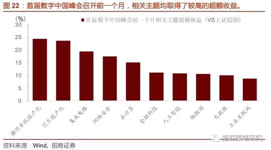 ?。?)政策紅利信號:數(shù)字中國建設(shè)峰會、人民日報整版討論信息化。第二屆數(shù)字中國建設(shè)峰會將于5月6日至5月8日召開,屆時共將舉辦12場分論壇,多部委都將主辦分論壇,峰會將討論多項(xiàng)信息技術(shù)前沿應(yīng)用,從首屆峰會項(xiàng)目成果來看,期間對接了數(shù)字經(jīng)濟(jì)重大項(xiàng)目400個,總投資約3000億元,涵蓋大數(shù)據(jù)、人工智能、芯片等多個領(lǐng)域,其中近200個項(xiàng)目已開工建設(shè)。參考首屆峰會對主題的催化,在峰會召開前一個月,包含網(wǎng)絡(luò)安全、云計算、人工智能、大數(shù)據(jù)、物聯(lián)網(wǎng)等在內(nèi)的數(shù)字中國重點(diǎn)建設(shè)領(lǐng)域主題均取得了較高的超額收益。4月12日,人民日報罕見整版討論:抓住信息化發(fā)展的歷史機(jī)遇,是政策紅利將要進(jìn)一步釋放的一大信號。