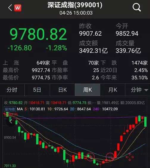 摘要: 一周蒸發(fā)3.5萬億,半年多以來最大周跌幅!你的牛市信仰還在嗎?原創(chuàng):王朱瑩連續(xù)大跌后,不少A股投資者的牛市信仰已經(jīng)動(dòng)搖。4月26日,上證綜指失守3100點(diǎn),下跌1.2%至3086.4點(diǎn);深證成指跌1.