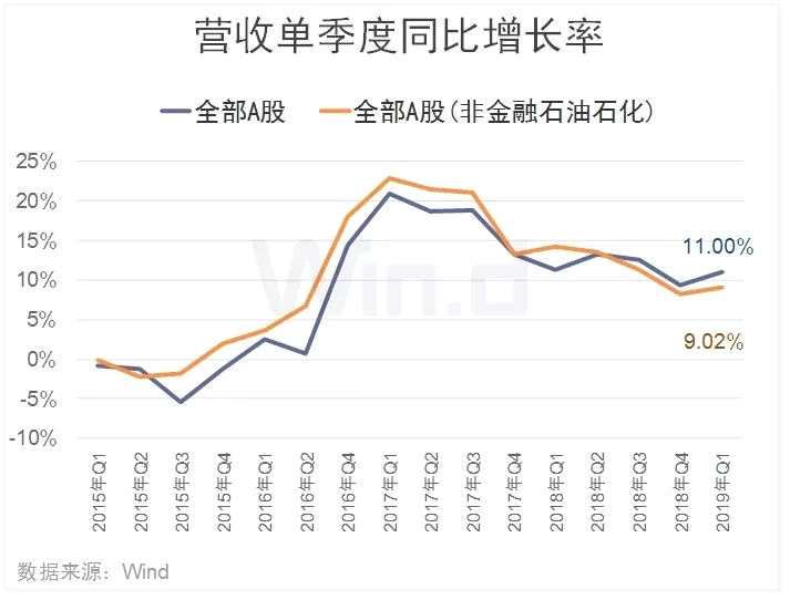 今年一季度,A股上市公司合計(jì)實(shí)現(xiàn)營(yíng)業(yè)總收入11.26萬(wàn)億元,同比增長(zhǎng)11%。剔除金融和兩桶油后,一季度A股營(yíng)業(yè)總收入約為7.52萬(wàn)億元,同比增長(zhǎng)9.02%。