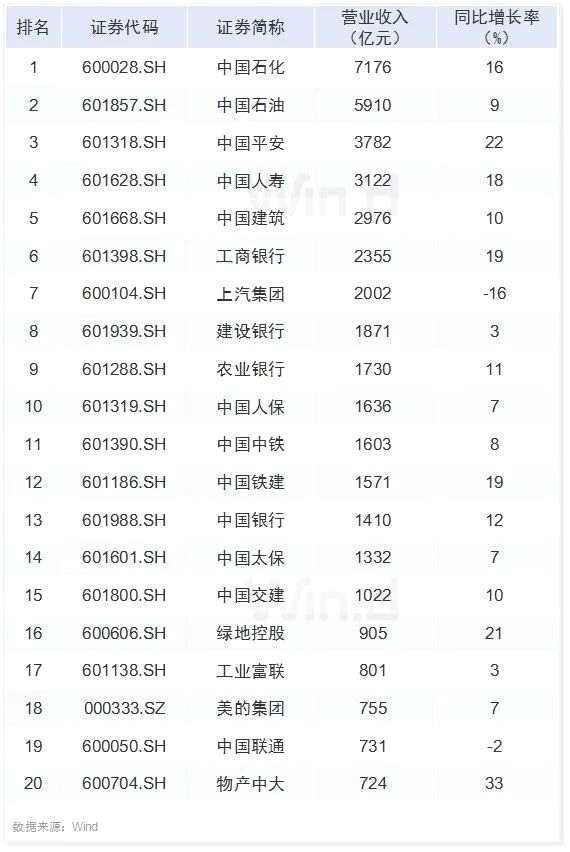 一季度,15家上市公司的營(yíng)業(yè)收入突破千億,“兩桶油”營(yíng)收規(guī)模穩(wěn)居前兩名,【中國(guó)石化(600028)、股吧】營(yíng)收高達(dá)7176億元居首。