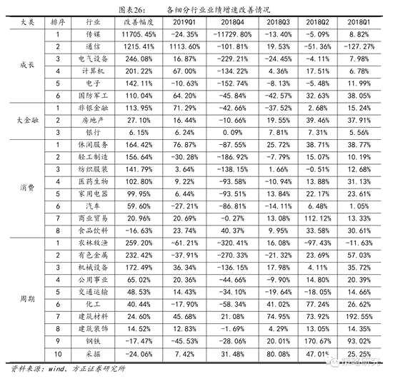 方正策略:2019Q1業(yè)績柳暗花明 全面回升