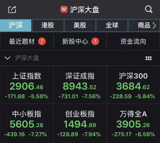 截至5月6日收盤,上證綜指下跌5.58%,收報2906.46點;深證成指下跌7.56%,收報8943.52點;創(chuàng)業(yè)板指下跌7.94%,收報1494.89點。