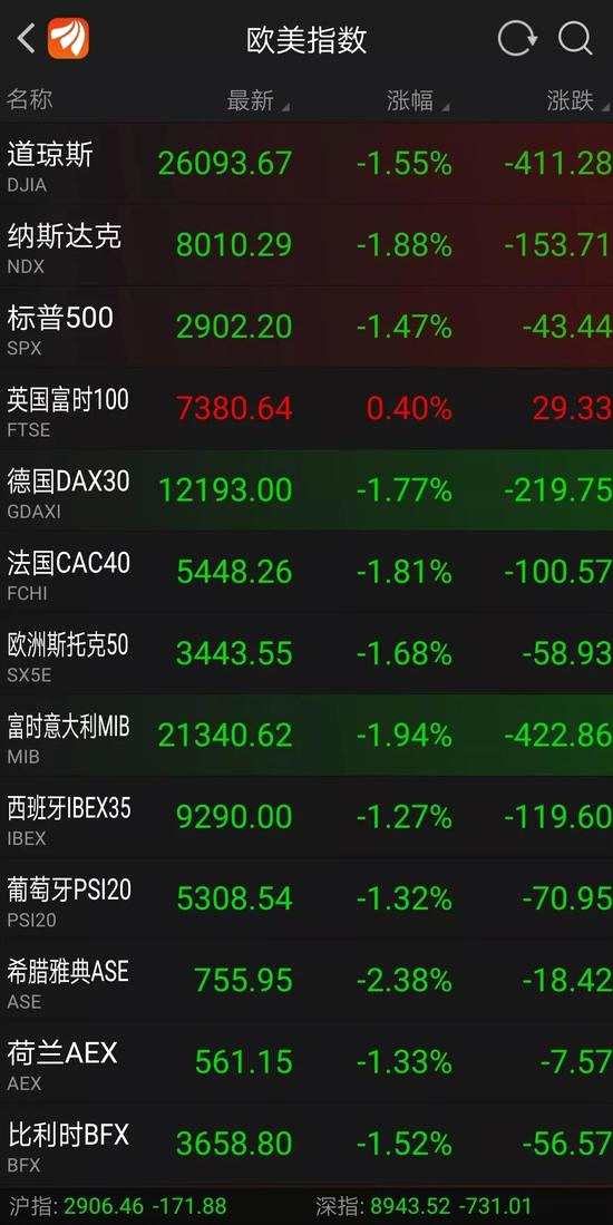 其他地區(qū)市場(chǎng)也未能幸免,港股恒生指數(shù)跌幅近3%,歐洲市場(chǎng)也一片慘淡,全球股市都處于震蕩之中。