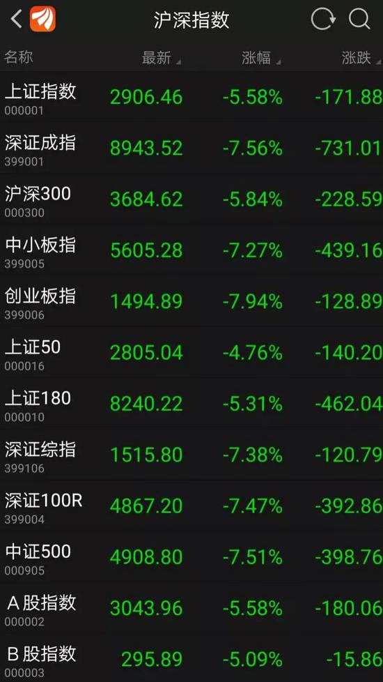上證指數(shù)跌幅達(dá)5.58%,深成指數(shù)跌7.56%,創(chuàng)業(yè)板指數(shù)的跌幅更是近8%,上證50表現(xiàn)稍好,但仍然跌了4.76%。兩市成交總金額6579億元。