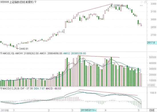 相對來說,運用牛熊分界線來判斷滬指的牛熊則要準確一些,比如在2003年4月的1649點恰好遇到牛熊分界線壓力;在2003年末起步的中級反彈中,雖然滬指向上突破了牛熊分界線,但差一個回踩確認的動作;在2010年10月和2011年2月,滬指向上突破牛熊分界線后,回踩確認失?。辉?014年初,滬指最高漲到2444點,但其仍未觸及牛熊分界線,所以牛市也沒來;在2017年,牛市的呼聲也是此起彼伏的,在2017年下半年,滬指向上突破了牛熊分界線,并且回踩也成功了,但2018年2月受外圍因素影響,滬指一陣大跌把牛熊分界線擊穿了,滬指又轉(zhuǎn)成熊市。2017年下半年到2018年初3587點的走勢極具迷惑性,當時確實很像牛市來了,但如果看到資金線與滬指背離2年的情況下,對于2018年的大跌也不會感到驚訝,這表明對于那些量價背離走勢,需要引起重視,這次滬指從3288點下跌之前,指標就與滬指出現(xiàn)了背離,如MACD指標。