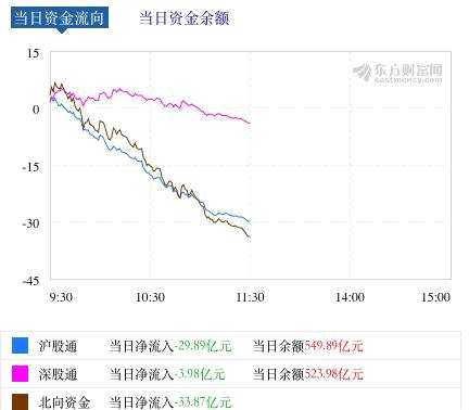 互聯(lián)網(wǎng)數(shù)據(jù)顯示,北向資金凈流出33.87億元,其中滬股通方向凈流出29.89億元;深股通凈流出3.98億元。