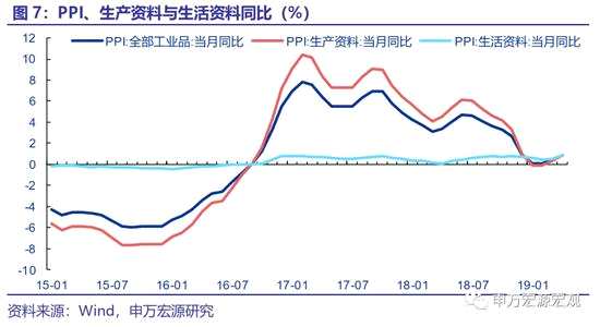與我們此前預(yù)期相比,豬肉漲幅較低、房租持續(xù)偏弱、增值稅減稅較早體現(xiàn)于成品油價(jià)格;而減稅在制成品領(lǐng)域尚未如期顯現(xiàn)、鮮果漲幅較高則令CPI略高于我們預(yù)期的2.4%,其他服務(wù)、鮮菜漲幅與預(yù)期一致。而鋼價(jià)環(huán)比上漲,帶動(dòng)PPI同比回升。