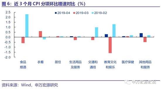 我們將消費(fèi)品拆分為食品、交通工具用燃料和工業(yè)制成品三類。其中,增值稅減稅已直接傳導(dǎo)至成品油降價(jià),4月交通工具用燃料環(huán)比-0.4%,直接抵消了前期原油價(jià)格漲幅。而工業(yè)制成品環(huán)比(0.07%)略弱于季節(jié)性、同比(1.5%)仍然持平前月,顯示增值稅結(jié)構(gòu)性減稅尚未明顯傳導(dǎo)至工業(yè)制成品部分,但減稅對(duì)高端可選消費(fèi)品的降價(jià)效應(yīng)預(yù)計(jì)仍將在后續(xù)月份逐步顯現(xiàn),對(duì)食品價(jià)格形成對(duì)沖。