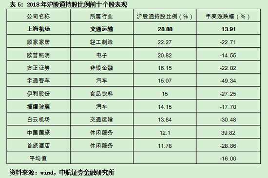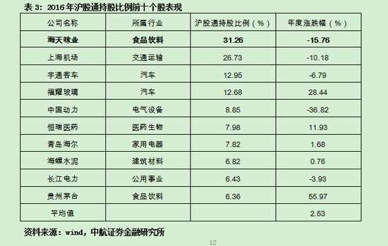 3.1滬股通持股比例前十個股的市場表現(xiàn)
