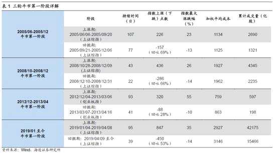 參考?xì)v史,調(diào)整的時(shí)空還不充分?;仡櫄v史,牛市第一階段上漲后市場(chǎng)的回調(diào)休整階段主要有:05/9-05/12、08/10-08/12、12/12-13/4,這三個(gè)階段牛市第一階段上漲后指數(shù)回調(diào)的幅度往往在10%-14%,回吐前期漲幅的六成多,回調(diào)時(shí)間在1-2個(gè)月。第一,從調(diào)整的空間來看,05/9-05/12期間上證綜指從05/6的998點(diǎn)反彈至05/9的1223點(diǎn),之后回撤156點(diǎn)至12月的1067點(diǎn)(跌幅-13%),回吐前期上漲幅度的0.69;08/10-08/12期間上證綜指從10月底的1664點(diǎn)上漲436點(diǎn)至12月初的2100點(diǎn)(漲幅26%),之后指數(shù)回撤286點(diǎn)至12月末的1814點(diǎn)(跌幅-14%),回吐前期上漲幅度的0.66;12/12-13/4期間,2012年12月創(chuàng)業(yè)板指在585點(diǎn)見底后最大上漲至3月初的905點(diǎn)(漲幅55%),之后指數(shù)最低回撤至4月的817點(diǎn)(跌幅-10%),回吐前期上漲幅度的0.28。這次從19/1上證綜指最低2440點(diǎn)最大上漲847點(diǎn)至4月初的3288點(diǎn)(漲幅35%),之后回撤450點(diǎn)至目前最低2838點(diǎn)(跌幅-14%),回吐前期上漲幅度的0.53,回調(diào)的幅度還不夠。第二,從調(diào)整時(shí)間來看,05/06-05/09期間上證綜指上漲約3個(gè)月,隨后05/09-05/12調(diào)整了約2個(gè)月;08/10-08/12月上證綜指上漲約2個(gè)月,隨后2008/12/10-2008/12/31調(diào)整約1個(gè)月;12/12-13/3創(chuàng)業(yè)板指上漲約4個(gè)月,隨后13/03-13/04調(diào)整約1個(gè)月。這次上證綜指從19/1/4的2440點(diǎn)至4月8日3288點(diǎn)上漲約3個(gè)月,從4月下旬以來指數(shù)下跌約1個(gè)月,調(diào)整時(shí)間還不夠。此外我們用每日上證綜指收盤價(jià)*全部A股成交量作為參照計(jì)算牛市第一階段上漲和下跌區(qū)間的成交均價(jià),發(fā)現(xiàn)上漲和下跌區(qū)間成交均價(jià)很接近,2005年上證綜指在6-9月上漲階段成交均價(jià)1134點(diǎn),9-12月下跌階段成交均價(jià)1125點(diǎn),2008年上證綜指在10-12月上漲階段成交均價(jià)1927點(diǎn),12月末下跌階段成交均價(jià)1962點(diǎn),2012年12月-13年3月創(chuàng)業(yè)板指上漲階段成交均價(jià)(創(chuàng)業(yè)板指收盤價(jià)*創(chuàng)業(yè)板成交量)759點(diǎn),3-4月下跌階段成交均價(jià)863點(diǎn)。所以下跌階段成交均價(jià)是否接近前期上漲階段成交均價(jià)可視為調(diào)整到位的參考指標(biāo),本輪上證綜指自2440-3288點(diǎn)成交均價(jià)為2927點(diǎn),3288點(diǎn)調(diào)整以來成交均價(jià)3120點(diǎn)相比仍有一定距離。若我們以近期日均618億股成交量作為假設(shè)(對(duì)應(yīng)6000億成交金額),以下跌區(qū)間成交均價(jià)達(dá)到前期上漲區(qū)間2927點(diǎn)為目標(biāo),在下跌區(qū)間延續(xù)到6月底、7月中、7月底三種情境下,對(duì)應(yīng)未來一段時(shí)間上證綜指均價(jià)為2760、2803、2829點(diǎn)。