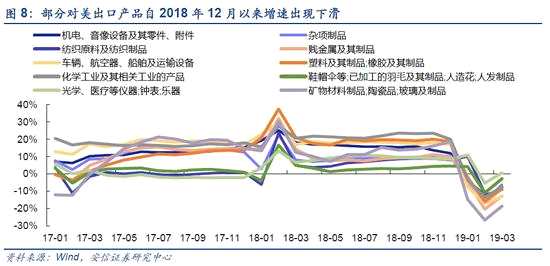 整體來看,我們認為問題對于中國經(jīng)濟整體直接影響有限,但從結構上看,對于部分行業(yè)的貿(mào)易帶來不利。整體來看,2019年前4個月,我國對外貿(mào)易格局趨穩(wěn),在對美貿(mào)易下滑11.2%的背景之下,出口累計同比增長5.7%,顯示了我國外貿(mào)韌性。