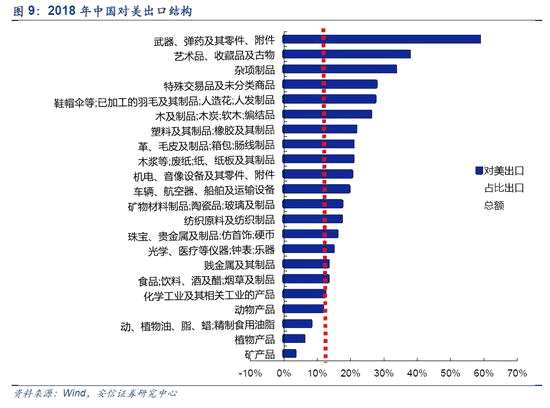 我們認為部分出口規(guī)模較大,且對美依存度較高的行業(yè)未來對美業(yè)務或受到一定影響??紤]各行業(yè)對美貿(mào)易依存度(對美出口額在總出口額中占比),在前十大行業(yè)中,雜項制品(33.5%),鞋帽傘等;已加工的羽毛及其制品;人造花;人發(fā)制品(27.3%),塑料及其制品;橡膠及其制品(21.6%),機電、音像設備及其零件、附件(20.3%)等行業(yè)對美貿(mào)易依存度高于中國整體對美貿(mào)易依存度(19.2%),其收到影響相對較明顯。