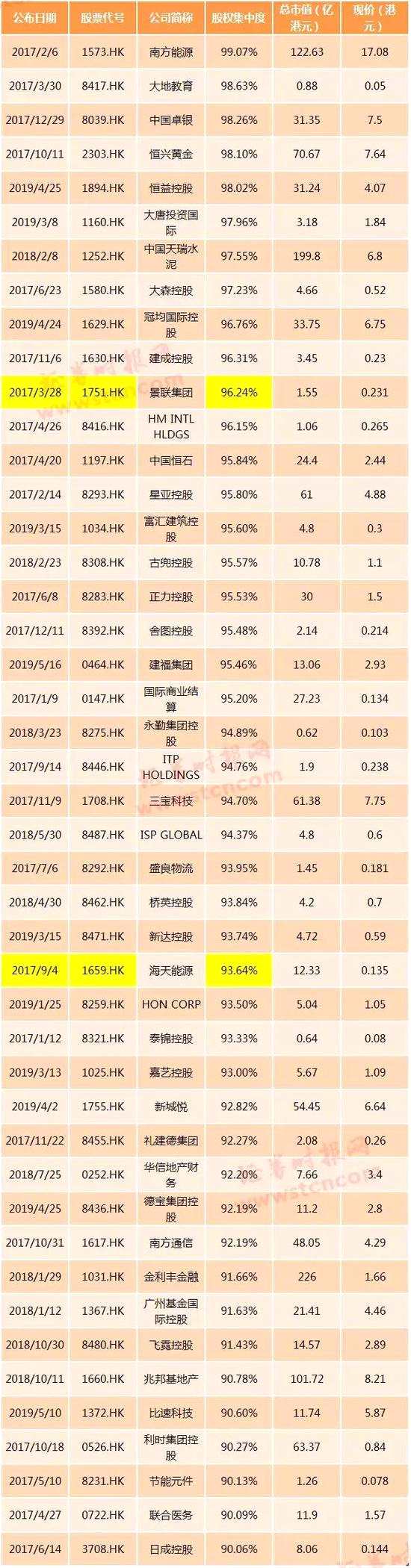 港證監(jiān)會(huì)公布163只股權(quán)高度集中名單