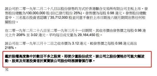 值得注意的是,香港證監(jiān)會(huì)一般會(huì)在股權(quán)高度集中的個(gè)股信息的末尾,以加粗的方式溫馨提示,買賣該等公司股票請(qǐng)審慎行事。潛臺(tái)詞是,盡量遠(yuǎn)離此等股票。