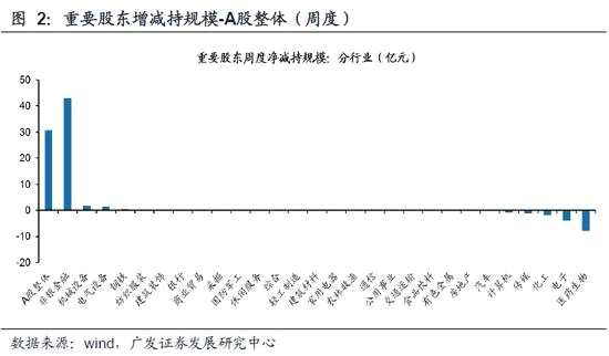 (2)重要股東增減持(A股整體):上周重要股東凈增持約31億元,前一周凈減持約4億元。其中凈增持規(guī)模前三分別為非銀金融、機(jī)械設(shè)備、電氣設(shè)備;減持規(guī)模前三分別為醫(yī)藥生物、電子、化工。