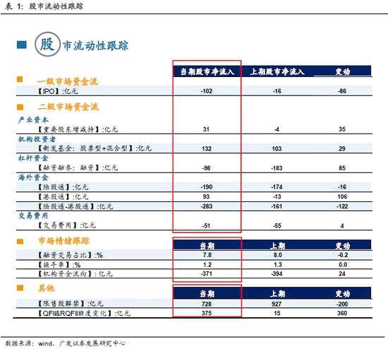 二級(jí)市場(chǎng):上周雖然新發(fā)基金增加,但北上資金流出及兩融融資余額下降,A股整體呈現(xiàn)凈流出態(tài)勢(shì)。其中,資金流入方面,國內(nèi)新發(fā)基金(股票型+混合型)規(guī)模132億元,重要股東增持約31億元;資金流出方面,兩融融資余額下降98億元,場(chǎng)內(nèi)杠桿資金規(guī)模持續(xù)下降,陸股通北上資金大幅凈流出190億元,交易費(fèi)用51億元。
