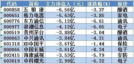 火山君(微信公眾號:huoshan5188)注意到:兩市主力資金凈流入超過1億元的個股較前一交易日大幅減少為僅5只,其中,帝爾激光、市北高新、長電科技位居主力資金凈流入前3名;主力資金凈流出超過1億元的個股較前一交易日大幅增加為55只,其中,五糧液、【格力電器(000651)、股吧】、東方通信位居主力資金凈流出前3名。