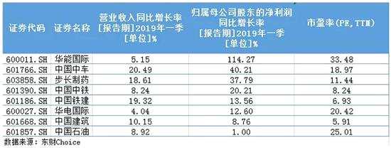 據(jù)統(tǒng)計,在這17只個股中,2018年歸母凈利潤同比增長在20%以上的公司約有6家,其中華電國際歸母凈利潤增幅約2.9倍,中國石油增幅約1.3倍。今年一季度歸母凈利潤同比增幅在20%以上的約有4家,其中華能國際歸母凈利潤增幅約1.14倍,中國中車增幅約40%。