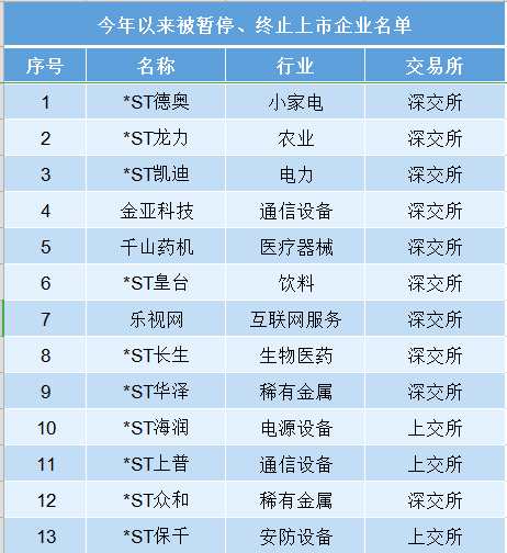 最怕的,不是空氣突然安靜,而是持倉股票被判死刑,要退市了。今年以來,被暫?;蚪K止上市的公司已達13家。