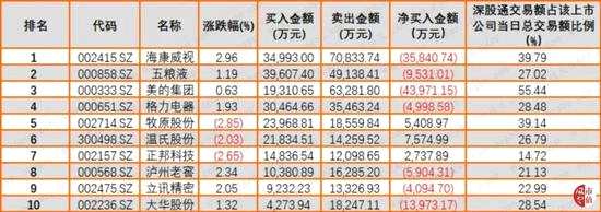 三、滬股通、深股通成交額前十