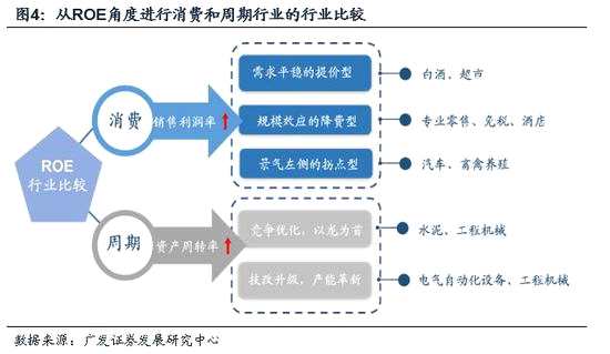 第三,從杜邦因子剖析傳統(tǒng)行業(yè)的ROE比較,未來ROE能夠保持穩(wěn)定或仍能提升的細(xì)分行業(yè)有哪些?——消費(fèi)行業(yè)ROE核心驅(qū)動力在于銷售利潤率,從需求平穩(wěn)的提價型(白酒、超市)、規(guī)模效應(yīng)的降費(fèi)型(專業(yè)零售、休閑服務(wù))、景氣左側(cè)的拐點(diǎn)型(汽車、畜禽養(yǎng)殖)三條線索展開;周期行業(yè)ROE的核心驅(qū)動力對比資產(chǎn)周轉(zhuǎn)率,關(guān)注競爭優(yōu)化的以龍為首(水泥、工程機(jī)械)、以及技改升級的產(chǎn)能革新(電氣自動化設(shè)備、專業(yè)設(shè)備)。