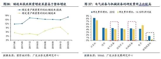 技術(shù)改造的投入力度可以通過上市公司財報中的研發(fā)費(fèi)用占收入的比重尋找線索,電氣設(shè)備、機(jī)械設(shè)備等制造類行業(yè)的研發(fā)投入占比在周期股中領(lǐng)先。18年A股整體剔除金融的研發(fā)費(fèi)用占收入比重大致在1.8%,周期股的這一比值在1.5%左右,我們對18年及過去5年行業(yè)研發(fā)費(fèi)用占收入比重進(jìn)行橫向比較,除了計(jì)算機(jī)、通信、電子等成長性行業(yè)的研發(fā)費(fèi)用占比較高之外,電氣設(shè)備與機(jī)械設(shè)備的研發(fā)費(fèi)用占收入比重持續(xù)在4%以上,排名在周期類行業(yè)內(nèi)最優(yōu)。