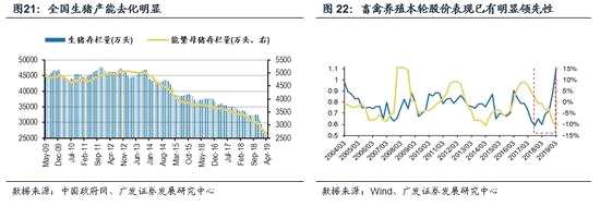 由于豬價仍在成本線下,截止19年一季報畜禽養(yǎng)殖行業(yè)的銷售利潤率仍在負(fù)增長的惡化通道。觀察全國生豬產(chǎn)能去化明顯、且產(chǎn)能恢復(fù)速度較慢,預(yù)示景氣大周期將反轉(zhuǎn)上行,看好畜禽行業(yè)的銷售利潤率迎來向上拐點(diǎn)。4月母豬存欄維持下滑,同比降幅繼續(xù)維持?jǐn)U大態(tài)勢。隨著下游庫存去化,疊加去年4季度開始全國存欄明顯下滑,后期供需缺口將逐步體現(xiàn),目前畜禽養(yǎng)殖行業(yè)的銷售利潤率負(fù)數(shù)有望迎來反轉(zhuǎn)上行。歷史上股價的相對表現(xiàn)與銷售利潤率的相對優(yōu)勢具有正相關(guān)性,但需留意本輪豬周期的股價表現(xiàn)已大幅超前,對估值保持緊密跟蹤。