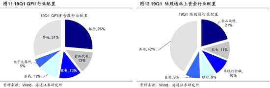 中美韓外資持股占比為4%/15%/32%,A股外資持股穩(wěn)定、集中在消費和金融類。外資流入A股有兩種途徑,一是通過滬深股通北上,該途徑下外資只能購買2000只左右滿足陸股通要求的股票;二是QFII/RQFII,該渠道下外資能買所有A股,但針對每家機構(gòu)外管局有購買額度的限制。根據(jù)央行的口徑,截止19Q1境外機構(gòu)和個人持有股票的市值為1.6萬億,占A股總市值比重為4%,占自由流通市值比重為7.4%,已是僅次于公募的第二大機構(gòu)投資者。但外資持股占比依舊低于美股的15%(18Q4)、中國臺灣的39%(19Q1)、韓國的32%(19Q1)。目前A股國際化進程正在加速中,MSCI2018年將A股納入其指數(shù)體系后,今年5月宣布將現(xiàn)有的中國大盤A股納入因子從5%增加至10%,同時以10%的納入因子納入中國創(chuàng)業(yè)板大盤A股,并計劃8月將所有中國大盤A股納入因子從10%增加至15%,11月從15%增加至20%,同時將中國中盤A股(包括符合條件的創(chuàng)業(yè)板股票)以20%的納入因子納入MSCI指數(shù);富時羅素與標(biāo)普道瓊斯計劃今年將中國A股納入其指數(shù)體系。富時羅素納入因子為25%,計劃19年6月/9月/20年3月的實施比例分別是20%/40%/40%。標(biāo)普計劃19年9月納入25%,9月6日公布成分股,9月23日生效。預(yù)計今年純指數(shù)化的被動外資流入A股規(guī)模在1500億人民幣左右,所有外資流入望達5000億人民幣。持股風(fēng)格上,QFII與陸股通北上資金均偏好大盤股,19Q1QFII持股中主板股票占持股總市值的比重為69%,陸股通為83%,且從歷史數(shù)據(jù)看,QFII風(fēng)格偏好較為穩(wěn)定,主板成分股市值占比一直在80%左右。行業(yè)配置上,QFII與陸股通北上資金均偏好大消費和金融,19Q1 QFII持股市值前五大的行業(yè)為銀行(26%)、食品飲料(13%)、家電(13%)、醫(yī)藥(11%)、電子元器件(5%);陸股通北上資金為食品飲料(21%)、家電(11%)、非銀金融(10%)、銀行(9%)、醫(yī)藥(9%)。持股特征上,QFII與陸股通北上資金均偏好低估值、高ROE的個股,QFII與陸股通中PE(TTM)小于35倍的股票市值占比分別為79%、80%, ROE(TTM)在10-30%區(qū)間的股票市值占比分別為77%、73%。