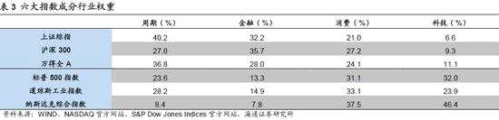 結(jié)構(gòu)上看,A股龍頭股的溢價并不明顯,重要指數(shù)的編制尚有改進的空間。我們在前期A股國際化系列報告中曾經(jīng)提過,發(fā)達國家股市中由于投資者占比較高,龍頭股更受偏愛,龍頭估值相對行業(yè)估值會有溢價。對比A股與美股各行業(yè)市值前五的龍頭公司及其所在行業(yè)的估值中位數(shù)水平,美股的科技與消費龍頭相對行業(yè)有明顯的估值溢價,如亞馬遜的PE(TTM)為74.6倍,相對行業(yè)PE的比值為3.5,強生為23.8倍/1.1,微軟為27.4倍/1.03,VISA為29倍/1.1,谷歌為27.7倍/1.04。作為對比,A股中消費科技龍頭多數(shù)相對行業(yè)折價,如工業(yè)富聯(lián)的PE(TTM)為15.8倍,相對行業(yè)PE的比值為0.6,海康威視為21.2倍/0.8,五糧液為27.3倍/0.9,【美的集團(000333)、股吧】為15.7倍/0.8。從指數(shù)的角度看,A股幾大指數(shù)在樣本股的選擇、權(quán)重的計算以及成分股的調(diào)整節(jié)奏上均有改善的空間。美股有道瓊斯工業(yè)、標(biāo)普500、納斯達克三大指數(shù),成分股選擇上,道指和標(biāo)普500分別精選了市場中30支和500支個股,納指則包含了納斯達克市場所有的個股;成分股權(quán)重計算上,道指在計算成分股權(quán)重的時候因為歷史原因,用的還是價格加權(quán)法,標(biāo)普500和納斯達克指數(shù)均用的調(diào)整后的市值來計算成分股的權(quán)重;成分股調(diào)整節(jié)奏上,三大指數(shù)均是相機調(diào)整(as-needed basis),即現(xiàn)有的成分股如果不滿足指數(shù)的標(biāo)準(zhǔn)后,即刻會被調(diào)整出指數(shù),而無需等到季度或者年度的會議中進行審議,因此三大指數(shù)實時反映了股市中核心個股整體的真實情況。作為比較,A股上證綜指、滬深300、創(chuàng)業(yè)板指三個指數(shù)中,大家最關(guān)注的上證綜指在選擇樣本時用的是滬市全部個股,并沒有選取有代表的成分股。在計算權(quán)重時雖然用的也是較為合理的市值加權(quán)法,但是計算時使用的市值指標(biāo)是“總市值”而非調(diào)整后的自由流通市值,因此受大盤藍籌股影響較大;滬深300指數(shù)規(guī)避了上證綜指使用總市值的問題,轉(zhuǎn)而采用自由流通市值計算300只成分股的權(quán)重,但是滬深300的成分股調(diào)整頻率為半年,頻率較低;同樣的,對標(biāo)納指的創(chuàng)業(yè)板指雖然用的也是自由流通市值加權(quán)法,但是100只成分股樣本也是半年調(diào)整。對比中美指數(shù)中各個行業(yè)的權(quán)重,由于兩地市場本身的市值分布不同,指數(shù)的行業(yè)權(quán)重也有明顯的差異,美股指數(shù)中消費和科技的權(quán)重較高,標(biāo)普500、道瓊斯工業(yè)、納斯達克三大指數(shù)中消費和科技的合計權(quán)重分別為63%、57%和84%,而A股指數(shù)偏向周期和金融,上證綜指、滬深300和萬得全A中周期和金融的合計權(quán)重分別為72%、64%和65%。