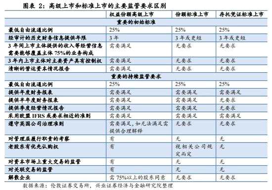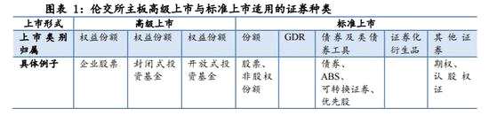 根據監(jiān)管要求的不同,倫交所主板市場的上市企業(yè)又可以進一步分為高級上市(Premium Listing)和標準上市(StandardListing)。高級上市與標準上市的區(qū)別主要在于上市時的要求及上市之后受到的持續(xù)監(jiān)管要求有所不同。高級上市所受到的監(jiān)管要求要高于標準上市。而如果從產品類型來看,高級上市的品種包括了企業(yè)的股票、證券投資基金,標準上市的品種則包含了GDR、債券類工具等。富時100指數等富時英國市場指數的成分,都是從主板市場高級上市企業(yè)中選取的。