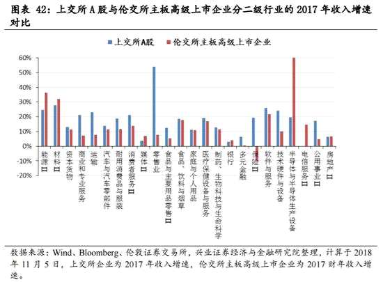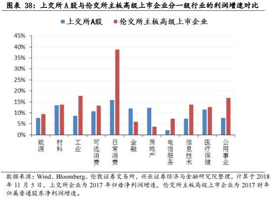 ——整體來看,倫交所高級上市企業(yè)市值集中度更高,能源、金融、日常消費品市值占比居前但相差不大,中等估值企業(yè)占比較多,整體ROE水平更高,2017年利潤增速兩級分化的情況更為明顯。