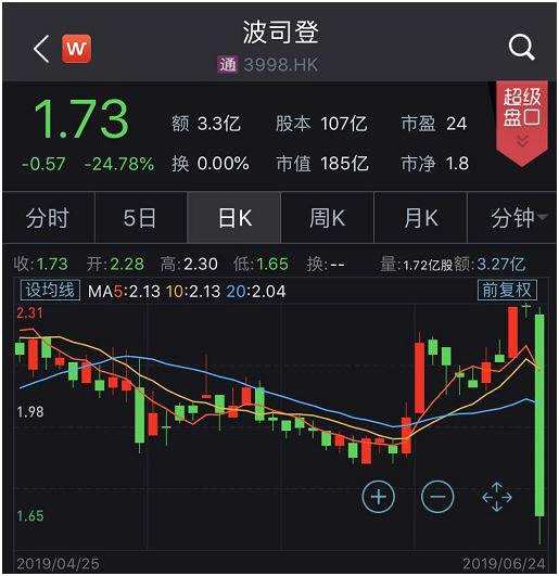 受此消息影響,波司登股價(jià)一度大跌超25%,創(chuàng)上市以來最大跌幅。截至停牌,股價(jià)跌幅為24.78%,市值蒸發(fā)60.9億港元。