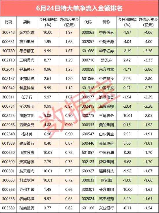 股價(jià)表現(xiàn)方面,特大單資金凈流入超億萬元個(gè)股今日平均上漲超7%,其中金力永磁、德恩精工、登海種業(yè)、新晨科技、任子行(維權(quán))5股收獲漲停板。