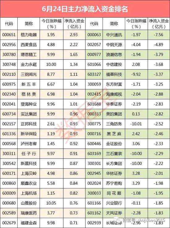 滬指6月24日上漲0.21%,主力資金全天凈流出260.58億元。其中,中小板主力資金凈流出57.01億元,創(chuàng)業(yè)板主力資金凈流出77.10億元,滬深300成份股主力資金凈流出72.07億元。