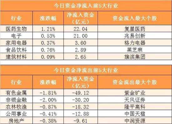 醫(yī)藥生物行業(yè)凈流入22.04億元居首