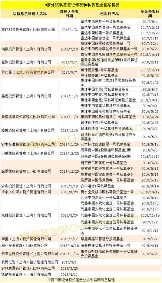 據(jù)了解,截止目前,已有富達(dá)利泰、瑞銀資管、英仕曼、施羅德、橋水投資等19家外商獨(dú)資私募證券投資基金在基金業(yè)協(xié)會(huì)登記,備案38只基金產(chǎn)品,管理基金規(guī)模52億元。未來或?qū)⒂型顿Y范圍中包含“港股通”的外資私募產(chǎn)品發(fā)行并備案。