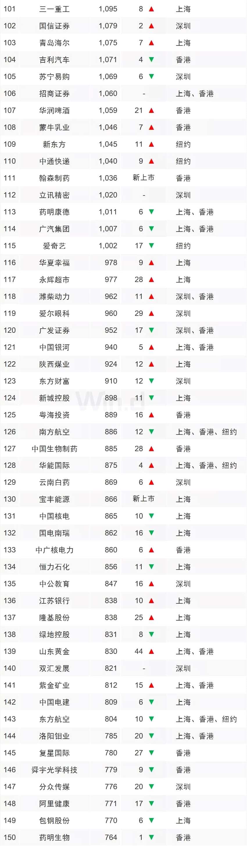 注:部分企業(yè)在中國(guó)大陸、香港、美國(guó)等地同時(shí)上市