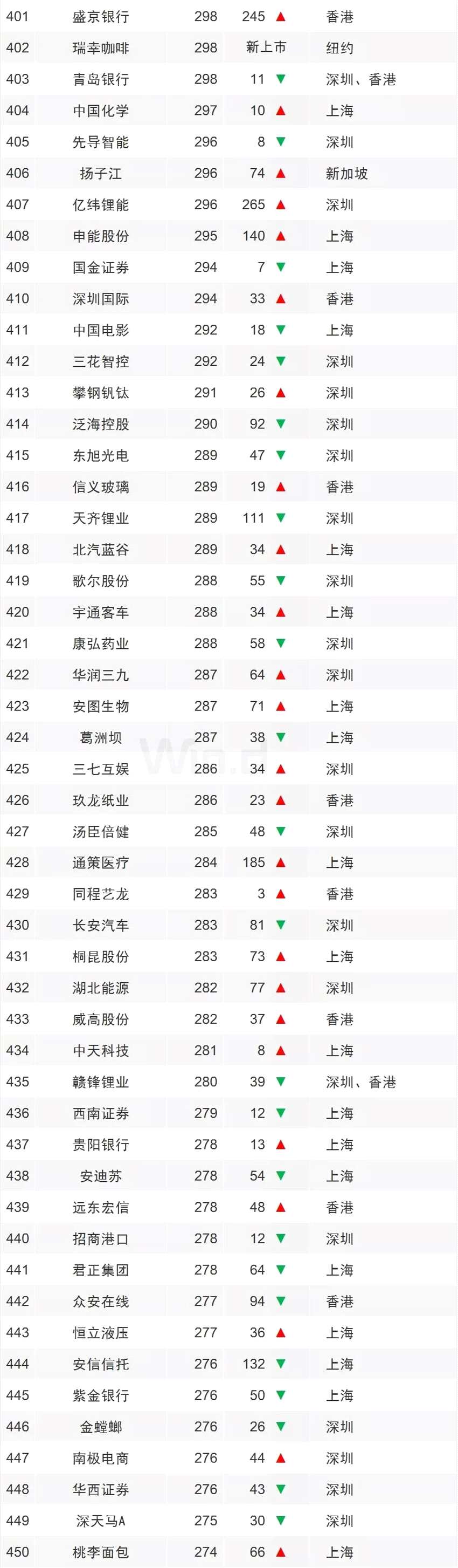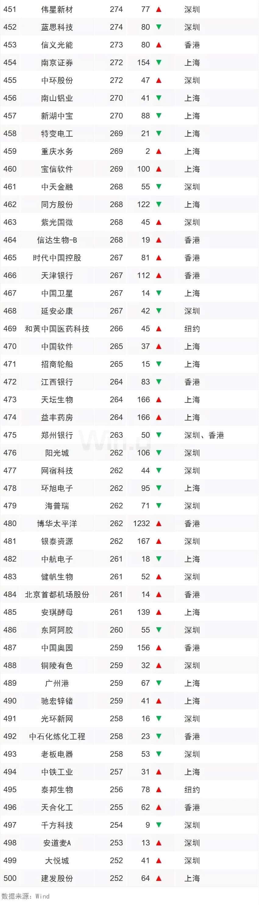 截至6月末,有38家新面孔躋身500強(qiáng),其中多數(shù)因股價(jià)上漲市值攀升,亦有部分新上市企業(yè)。