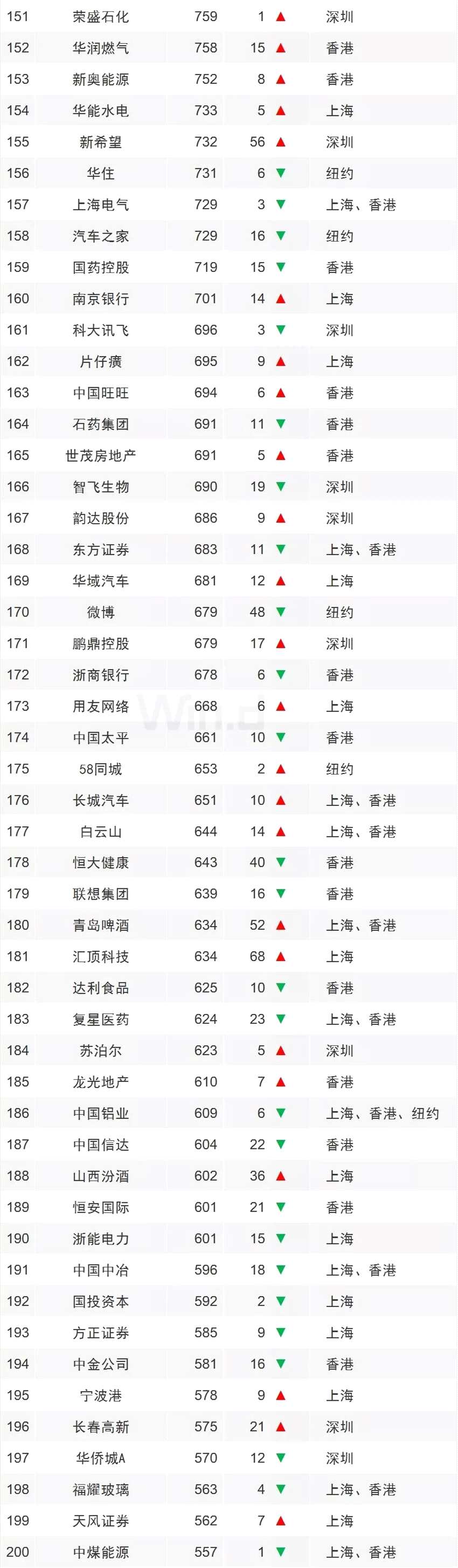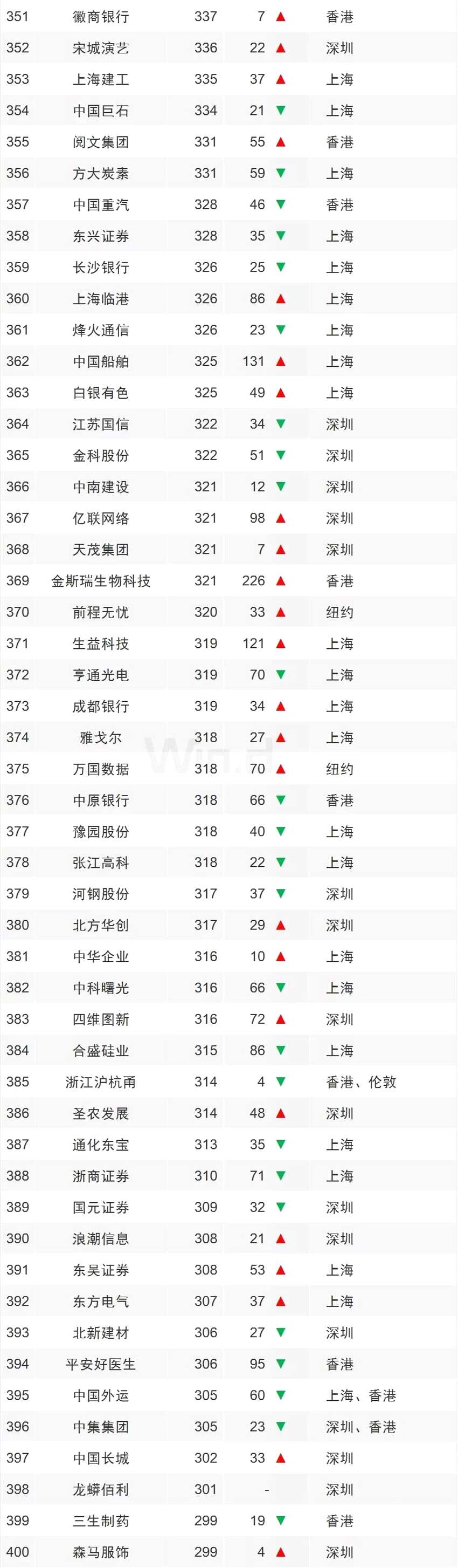 中國(guó)企業(yè)市值500強(qiáng)榜單