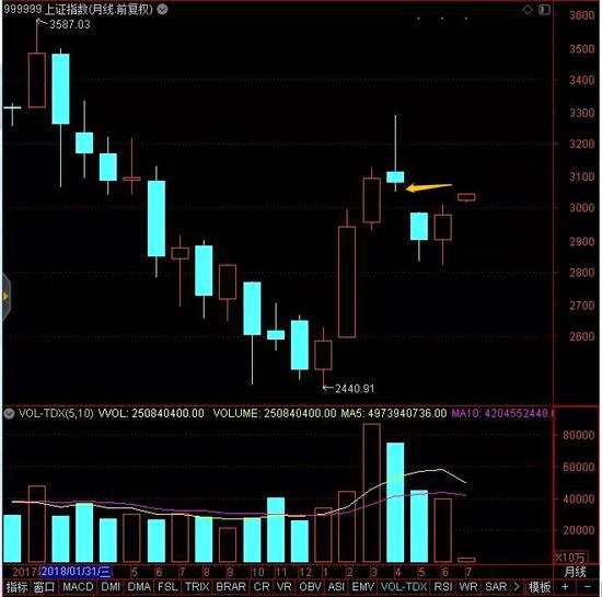 原因有兩個(gè),第一個(gè)是,先請(qǐng)大家看看滬指的周線和月線,在上面找一下3050點(diǎn)位置,可以看到這個(gè)位置是一個(gè)重要的低點(diǎn),如下圖:
