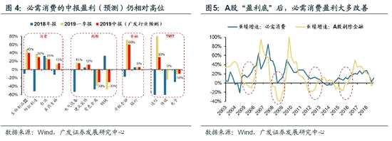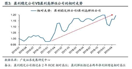 2. 從A股進化論2.0看中國優(yōu)勢企業(yè)中期風格延續(xù):我們去年發(fā)布了十篇A股進化論系列報告,今年4月發(fā)布《中國優(yōu)勢企業(yè)勝于易勝》,在中期策略展望《星火破秋寒》中進一步指出,“金融供給側改革”將加速A股步入“進化2.0”時代。中國優(yōu)勢企業(yè)將持續(xù)受益于流動性分層、風險偏好分層以及盈利偏好分層。盈利穩(wěn)定性高的公司更易獲得超額收益:19年2月金融供給側改革以來,盈利穩(wěn)定性高的公司以更大的斜率跑贏盈利彈性高的公司——我們驗證了A股盈利穩(wěn)定性高的公司(過去兩年ROE相對高位)和盈利彈性高的公司(過去兩年凈利潤增速相對較高)的相對市場表現(xiàn),可以看到:17年以來,盈利穩(wěn)定性高的公司持續(xù)跑贏盈利彈性高的公司。必需消費中報盈利不差,下半年盈利可期,具備較高的盈利穩(wěn)定性——(1)根據(jù)廣發(fā)各行業(yè)小組預判,中報生物制品、紡織制造、白酒等行業(yè)的盈利增速分別為40%、30%、25%;(2)經(jīng)驗數(shù)據(jù)顯示,A股“盈利底”后,必需消費的盈利增速大多改善。我們判斷A股“盈利底”將不遲于Q3出現(xiàn)。同時,“金融供給側改革”也將帶來A股流動性和風險定價分層,盈利具備高穩(wěn)定性的必需消費行業(yè)的融資環(huán)境以及風險偏好也將得到持續(xù)改善。
