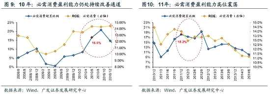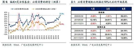 3. 當前必需消費的基金持倉比較集中,借鑒歷史經(jīng)驗,必需消費行情短期可能“歇一歇”,但下半年盈利能力有韌性,中期來看必需消費的超額收益大概率延續(xù)。經(jīng)測算,當前公募基金對必需消費的持倉比例32.8%、超配比例18%,接近歷史上三次“抱團”的高點:之后1個月的超額收益期望值為負,但之后3~6個月的超額收益期望值基本為正。必需消費超配比例接近18%之后,盈利能力的韌性是“抱團”能否維系的關鍵——(1)抱團“瓦解”:06年經(jīng)濟過熱,周期品的盈利能力現(xiàn)在改善且大幅超越必需消費,基金從消費換倉周期。(2)“抱團”延續(xù):10年受益于“家電下鄉(xiāng)”政策(2010年3月29日出臺《新增家電下鄉(xiāng)補貼品種實施方案》),必需消費盈利能力仍在持續(xù)改善通道中。(3)“抱團”松動:11年宏觀經(jīng)濟處于下行周期必需消費盈利能力具備穩(wěn)定性,“喝酒吃藥”行情延續(xù),必需消費的基金持倉也高位震蕩。我們認為,中報必需消費盈利不差,下半年盈利有支撐(見本文第2段),近期也看不到盈利能力更強的“替代品”,必需消費中期超額收益還將延續(xù)。