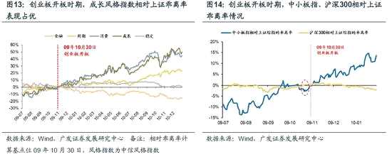 4. 科創(chuàng)板對A股科技公司的映射至少維持到開板初期。本周五上交所披露,7月22日科創(chuàng)板將舉行首批公司上市儀式,科創(chuàng)板開板在即。借鑒2011年創(chuàng)業(yè)板開板的經(jīng)驗,我們認為,科創(chuàng)板開板將提升A股的風險偏好,并帶來顯著的科技成長股的風格效應。(1)參考創(chuàng)業(yè)板開板經(jīng)驗,科創(chuàng)板開板初期將助力提升A股的風險偏好——2011年創(chuàng)業(yè)板開板初期,A股成交明顯放量,風險偏好顯著提升。目前A股股權風險溢價尚存較大改善空間,科創(chuàng)板開板對A股風險偏好的有提振作用。(2)創(chuàng)業(yè)板開板對存量板塊(尤其是成長風格)形成了顯著的風格效應,預計在科創(chuàng)板開板初期,科技成長股的估值有望獲得提振——創(chuàng)業(yè)板開板之后,成長股估值明顯改善:在各類風格指數(shù)中,成長風格指數(shù)相對上證乖離率表現(xiàn)占優(yōu)。同時,與創(chuàng)業(yè)板風格更相近的中小板估值提振力度更大,長期累計收益更高,開板后3個月相對乖離率達13.7%。