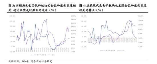 以史為鑒,歷史上的抱團(tuán)本質(zhì)上是對(duì)盈利的抱團(tuán),起于盈利增速的提升,終于“盈利預(yù)期扭轉(zhuǎn)”?;仡櫄v史可以發(fā)現(xiàn),歷次抱團(tuán)都有著相同的演繹過(guò)程。以最具有代表性的食品飲料板塊為例,以基金季報(bào)10大重倉(cāng)股為統(tǒng)計(jì)口徑,食品飲料板塊在基金倉(cāng)位配置上出現(xiàn)了三個(gè)主要的周期變化:1)09年第二季度到12年第三季度的抱團(tuán)期:期間倉(cāng)位占比不斷提升;2)12年第四季度到15年第一季度的“沉默”期:期間倉(cāng)位占比不斷下降;3)15年第一季度至今的再次抱團(tuán)期:期間倉(cāng)位占比不斷提升。總結(jié)歷史可以發(fā)現(xiàn),從2009年下半年開(kāi)始食品飲料板塊的持倉(cāng)占比持續(xù)提升,而對(duì)應(yīng)的也是食品飲料板塊盈利增速的抬升。隨后,在2012年3季度食品飲料的盈利增速達(dá)到階段高點(diǎn),同期持倉(cāng)占比亦達(dá)到了階段高點(diǎn),隨后隨著行業(yè)板塊盈利增速的下行,基金持倉(cāng)比例也快速的下行。需要注意的是,根據(jù)業(yè)績(jī)披露的時(shí)間差,說(shuō)明基金在2012年四季度已經(jīng)進(jìn)行了減倉(cāng)行為,即在四季度的盈利預(yù)期出現(xiàn)了扭轉(zhuǎn),進(jìn)而帶動(dòng)了四季度整體的板塊的大幅度減倉(cāng),倉(cāng)位占比快速下行。而在2015年一季度,食品飲料板塊的倉(cāng)位又再次提升,其背景也是看到了盈利的拐點(diǎn)。同樣的現(xiàn)象在成長(zhǎng)股的代表電子板塊上也在上演。因此,抱團(tuán)的本質(zhì)是對(duì)盈利的抱團(tuán),起于盈利增速的提升,終于“盈利預(yù)期扭轉(zhuǎn)”。