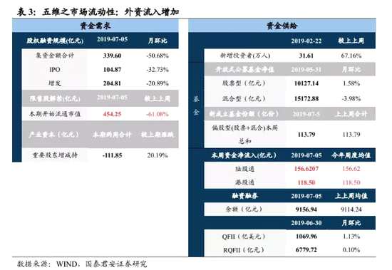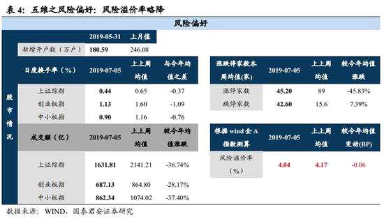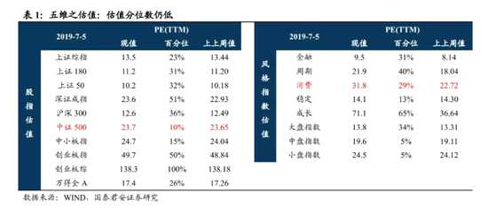 根據(jù)4X4配置體系,盈利拐點(diǎn)有望加速來(lái)臨,進(jìn)而化解高估值帶來(lái)的市場(chǎng)擔(dān)憂。近期專項(xiàng)債可以部分作為資本金的政策的推出,進(jìn)一步加大杠桿效應(yīng)。這一政策釋放了明確的信用擴(kuò)張信號(hào)。本周商務(wù)部召開(kāi)“穩(wěn)外貿(mào)、穩(wěn)外資、促消費(fèi)”新聞發(fā)布會(huì),從發(fā)布會(huì)的主題以及儲(chǔ)士家司長(zhǎng)的發(fā)言中可以看到,中央對(duì)“六穩(wěn)”依舊重視。相信7月底的政治局會(huì)議有望為政策定調(diào),讓市場(chǎng)安心,成為一劑強(qiáng)有力的催化劑。同時(shí),5月份的規(guī)模以上工業(yè)企業(yè)利潤(rùn)已經(jīng)出現(xiàn)了明顯的回升,累計(jì)同比回升到-2.3%(前值-3.4%),而當(dāng)月同比增速已經(jīng)轉(zhuǎn)正為1.1%(前值-3.7%)。在4周期傳導(dǎo)下,盈利修復(fù)的基礎(chǔ)將進(jìn)一步鞏固。根據(jù)我們年中策略報(bào)告的預(yù)測(cè)19年第二至第四季度,全A非金融石油石化行業(yè)的盈利有望實(shí)現(xiàn)13.6%、8.12%和16.35%的增速,進(jìn)而確定盈利增速的拐點(diǎn)