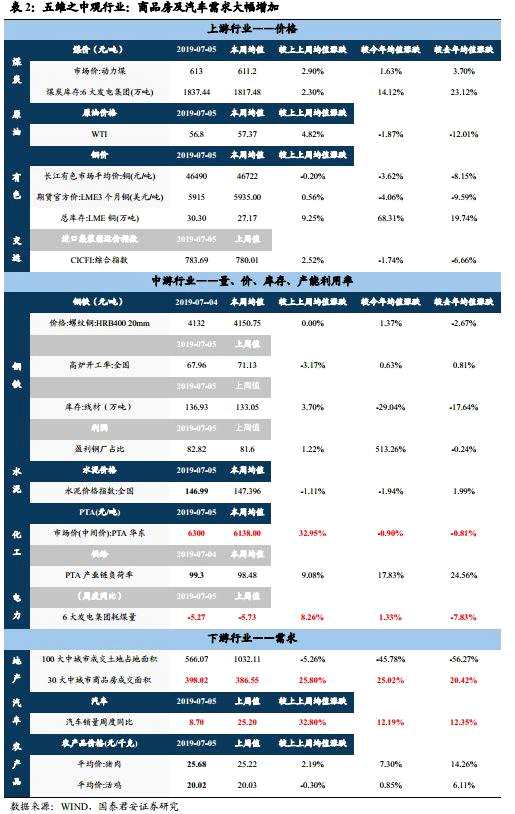 而且,根據(jù)我們4X4配置體系,盈利拐點(diǎn)有望加速來(lái)臨,進(jìn)而化解高估值帶來(lái)的市場(chǎng)擔(dān)憂。專項(xiàng)債在可以部分作為資本金的情況下,進(jìn)一步加大杠桿效應(yīng)。這一政策釋放了明確的信用擴(kuò)張信號(hào)。本周商務(wù)部召開(kāi)“穩(wěn)外貿(mào)、穩(wěn)外資、促消費(fèi)”新聞發(fā)布會(huì),從發(fā)布會(huì)的主題以及儲(chǔ)士家司長(zhǎng)的發(fā)言中可以看到,中央對(duì)“六穩(wěn)”依舊重視,商務(wù)部已經(jīng)率先行動(dòng)。相信7月底的政治局會(huì)議有望為政策定調(diào),讓市場(chǎng)安心,成為一劑強(qiáng)有力的催化劑。5月份的規(guī)模以上工業(yè)企業(yè)利潤(rùn)已經(jīng)出現(xiàn)了明顯的回升,累計(jì)同比回升到-2.3%(前值-3.4%),而當(dāng)月同比增速已經(jīng)轉(zhuǎn)正為1.1%(前值-3.7%)。在4周期傳導(dǎo)下,盈利修復(fù)的基礎(chǔ)將進(jìn)一步鞏固。根據(jù)我們年中策略報(bào)告的預(yù)測(cè)19年第二至第四季度,全A非金融石油石化行業(yè)的盈利增速有望實(shí)現(xiàn)13.6%、8.12%和16.35%的增速,進(jìn)而確定盈利增速的拐點(diǎn)。
