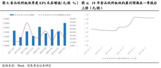 抱團(tuán)的終結(jié)往往是“盈利預(yù)期扭轉(zhuǎn)”,但目前尚未看到。目前的盈利預(yù)期能對(duì)目前的抱團(tuán)板塊提供支撐。18年下半年市場(chǎng)就曾出現(xiàn)對(duì)食品飲料板塊后續(xù)表現(xiàn)的擔(dān)憂,當(dāng)時(shí)市場(chǎng)的主要邏輯是認(rèn)為消費(fèi)板塊在宏觀經(jīng)濟(jì)下行壓力下,其業(yè)績(jī)的調(diào)整也會(huì)出現(xiàn)。但最終結(jié)果顯示2018年食品飲料行業(yè)的每股收益分季度分別增長(zhǎng)30.76%、33.65%、10.71%、44.40%,全年增長(zhǎng)30.26%,達(dá)到0.9556元,而17年每股收益增速僅為24.02%。食品飲料的盈利雖有波動(dòng),但是依舊表現(xiàn)出很強(qiáng)的盈利韌性。同時(shí),Wind一致預(yù)期對(duì)19年食品飲料板塊的盈利預(yù)期在一季報(bào)后不僅沒(méi)有下修(多數(shù)行業(yè)出現(xiàn)下修),反而在上修,進(jìn)一步體現(xiàn)出了該板塊盈利的韌性。因此,穩(wěn)定增長(zhǎng)的盈利水平可以支撐該行業(yè)30倍左右的估值。因此,我們認(rèn)為對(duì)大消費(fèi)板塊不必?fù)?dān)心,如果認(rèn)為市場(chǎng)有下行的風(fēng)險(xiǎn),消費(fèi)板塊更不會(huì)是導(dǎo)火索,因?yàn)槠涮烊皇强癸L(fēng)險(xiǎn)板塊。另外,消費(fèi)板塊的上漲和壯大,一方面是有業(yè)績(jī)的保障、有市場(chǎng)的認(rèn)可;另一方面,也是我國(guó)經(jīng)濟(jì)結(jié)構(gòu)轉(zhuǎn)型,內(nèi)需成為經(jīng)濟(jì)發(fā)展第一動(dòng)力的宏觀背景在資本市場(chǎng)上的映射。