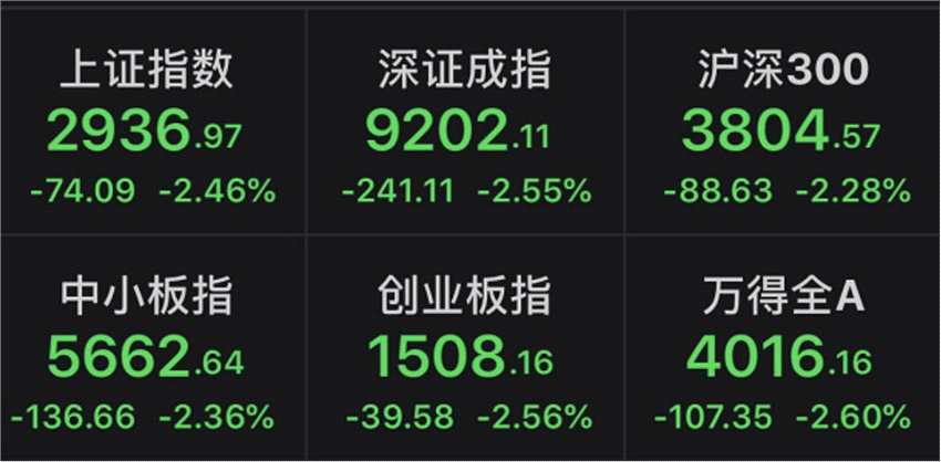 沒有一點點防備,今天早上,A股又吃了一碗大面。截至午間收盤,滬指跌2.46%,深證成指跌2.55%,創(chuàng)業(yè)板指跌2.56%,兩市半日合計成交3148.17億元。