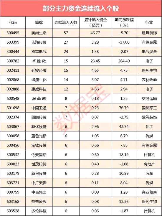 主力資金連續(xù)流入個(gè)股