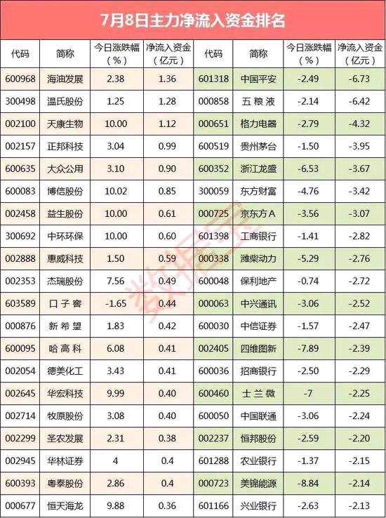 主力資金凈流出個(gè)股中,中國平安主力資金凈流出6.73億元,凈流出資金最多;其次是五糧液、【格力電器(000651)、股吧】,凈流出資金分別為6.42億元、4.32億元。